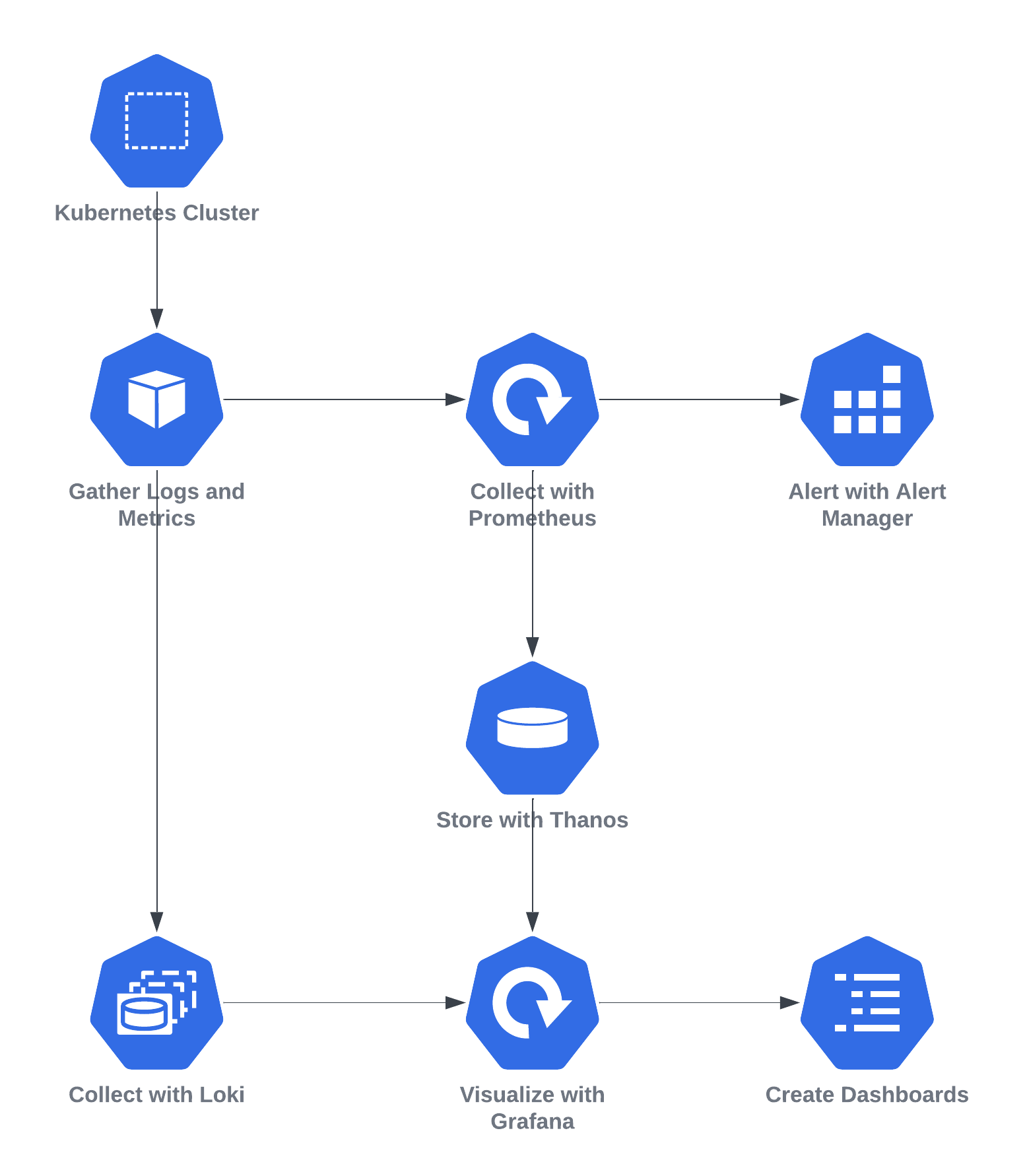 - Built-in dashboards in Grafana for monitoring Kubernetes and platform services.